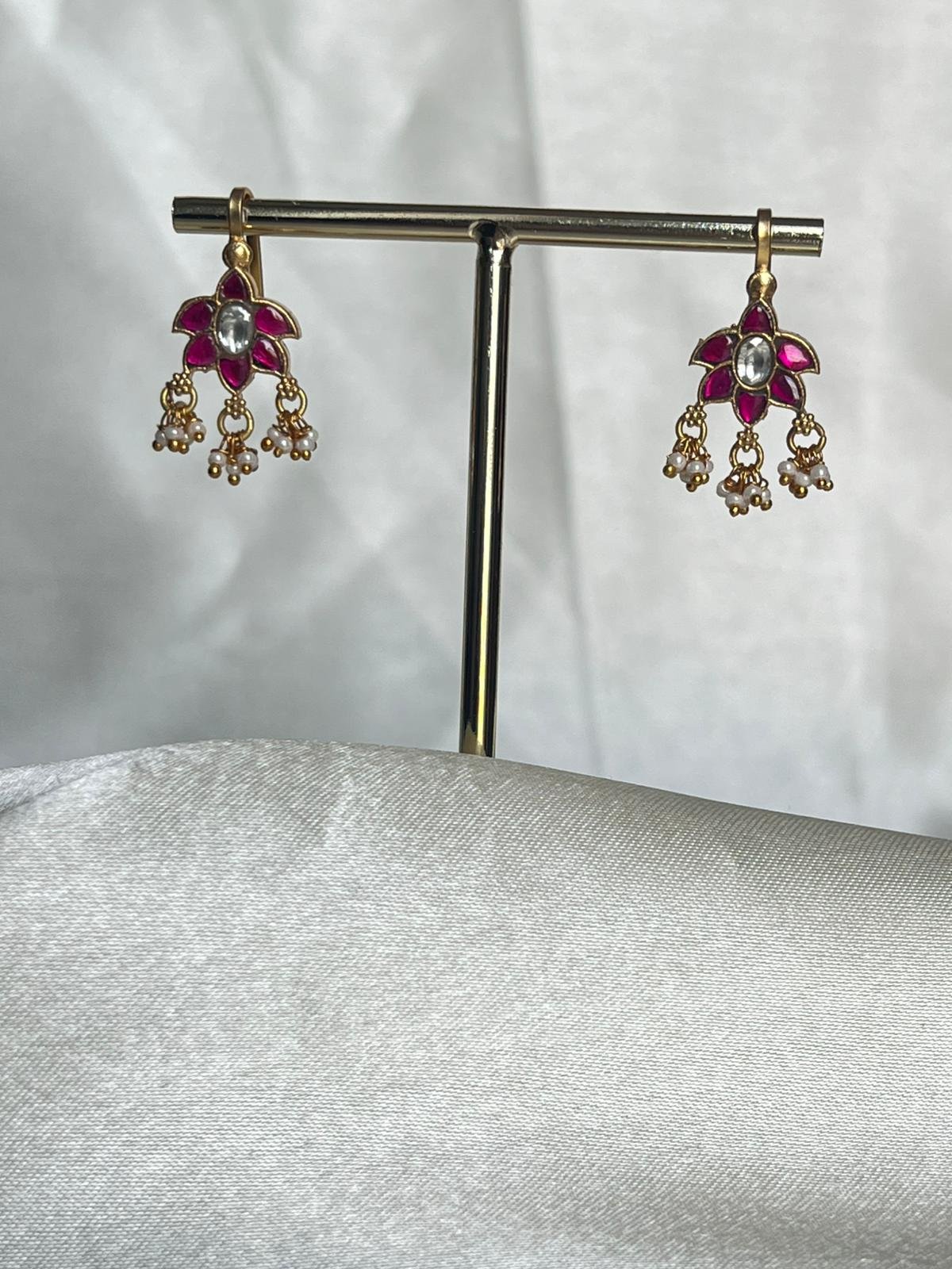 Traditional floral mottil style kundan jadau press bugadi white pearls