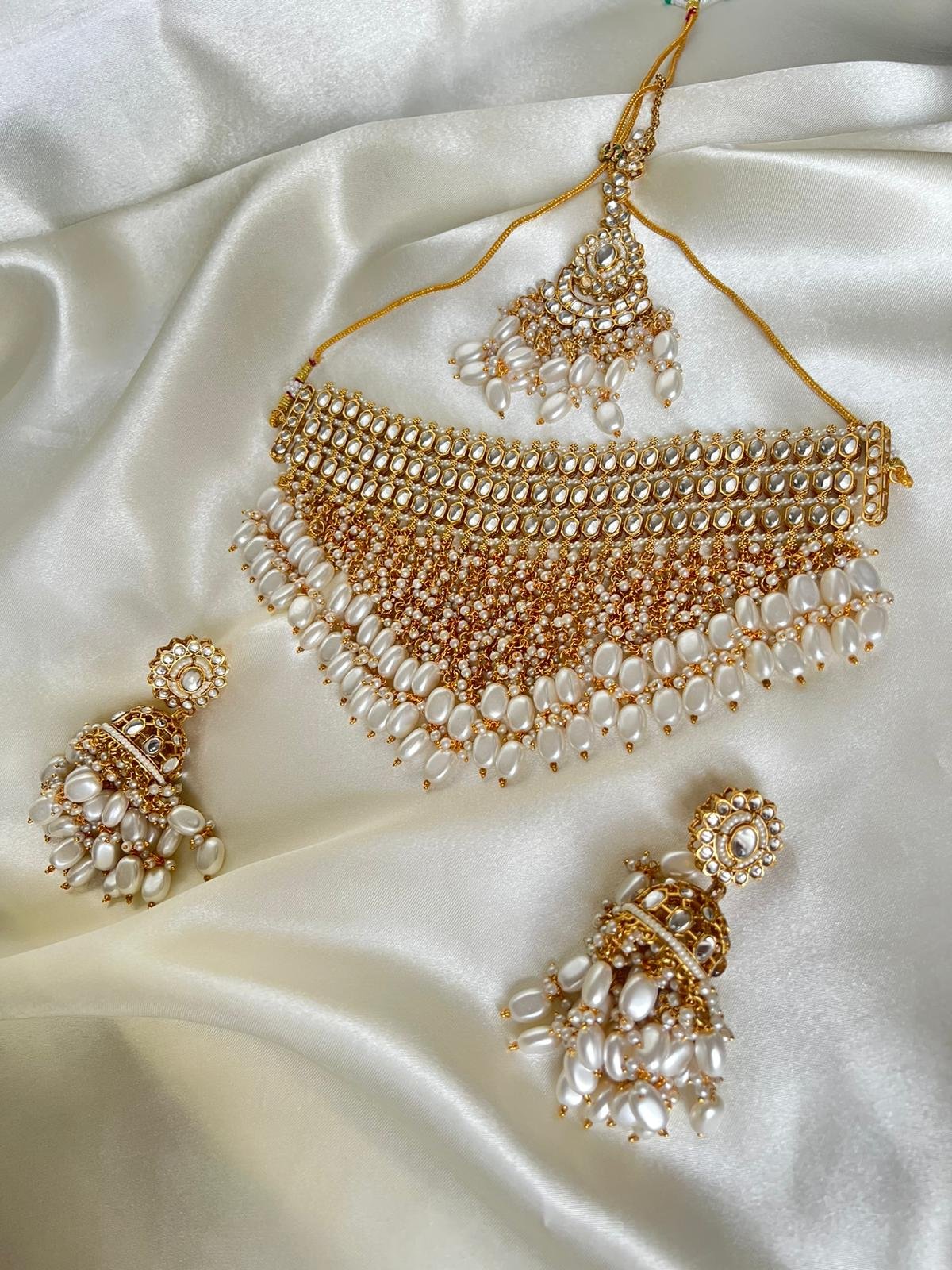 Golden Glow: An opulent Kundan Set featuring brilliant simulated uncut stones in a traditional gold-plated setting, perfect for grand celebrations.
