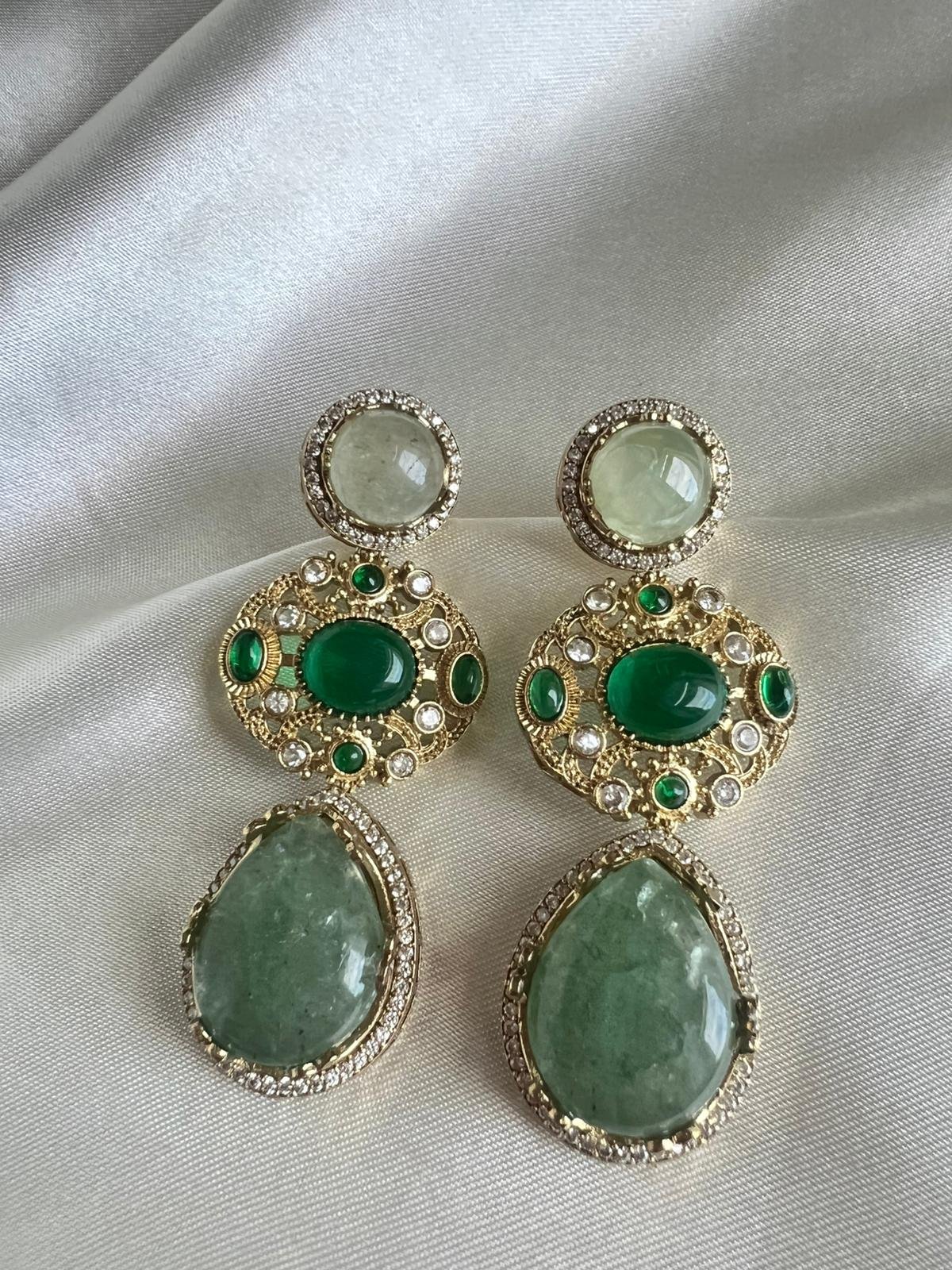 Boho Gem: A popular, vibrant earring design featuring large simulated natural stones for a grounded and stylish look.