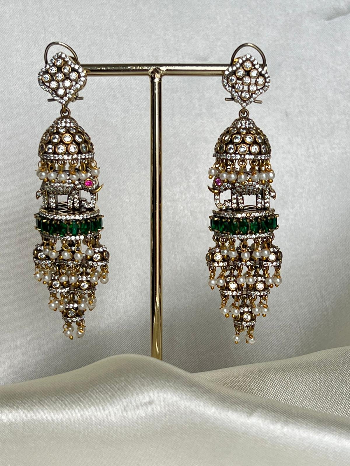 As part of the “Victoria Earing” collection, this earring is characterized by a refined aesthetic, likely a stud or drop style featuring clear or colored simulated stones that resemble diamonds or other precious gems, offering a glamorous, high-end look. The design emphasizes sparkle and classic beauty, making it a popular and fast-selling accessory suitable for formal wear, evening events, or adding a touch of brilliance to everyday attire.